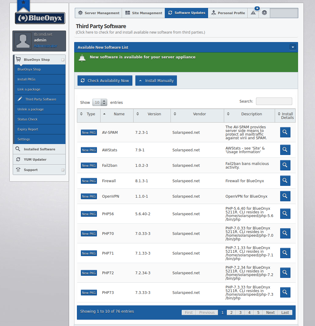 Our distribution system is integrated directly into your BlueOnyx server. You will find all you need in the tab "Software Updates" on your BlueOnyx server.